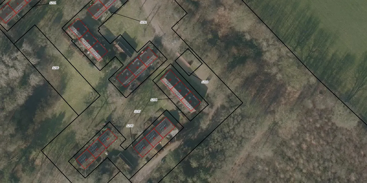 Het adres ligt op het perceel VDR00-H-1234, dat zich in de kadastrale gemeente Vledder bevindt. De gemiddelde perceelgrootte in Vledder is 1,2 ha. Dit perceel is kleiner: de perceeloppervlakte bedraagt 401 m². Het kleinste perceel in de kadastrale gemeente is 0 m² groot. De grootste perceeloppervlakte is 1,20 km². Op het perceel liggen in totaal 3 adressen. De huidige grenzen van het perceel zijn digitaal in de Basisregistratie Kadaster (BRK) geregistreerd op 26-03-2001.
