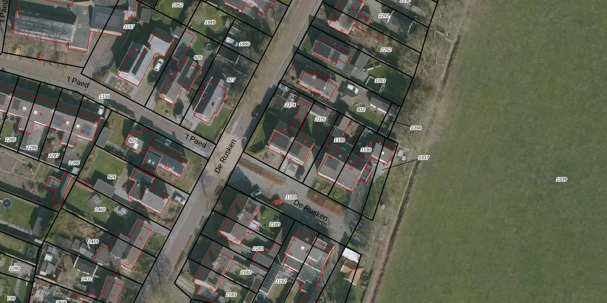 Het perceel waarop De Rusken 32 staat heeft een oppervlakte van 237 m². Dit is een middelgroot perceel. De perceeloppervlakte wordt geregistreerd door het Kadaster. Gedetailleerde informatie over de maten van dit perceel kunt u vinden in het rapport Kadastrale kaart met maatvoering van De Rusken 32.