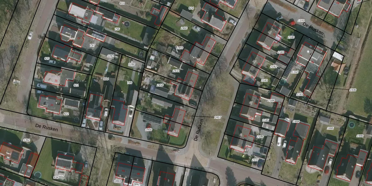 Het perceel waarop De Rusken 9 staat heeft een oppervlakte van 346 m². Dit is een groot perceel. De perceeloppervlakte wordt geregistreerd door het Kadaster. Gedetailleerde informatie over de maten van dit perceel kunt u vinden in het rapport Kadastrale kaart met maatvoering van De Rusken 9.
