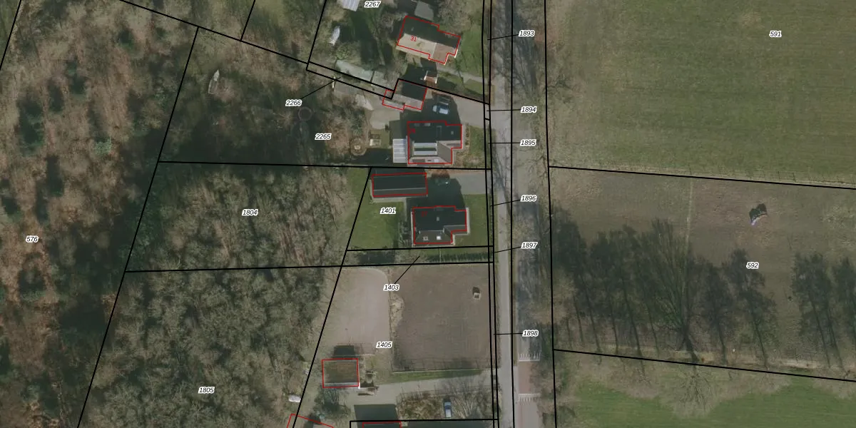 Het adres is gelegen op perceel 1401 in de sectie F en de kadastrale gemeente Ureterp. De kadastrale aanduiding is aldus URT00-F-1401. Het perceel is kleiner dan gemiddeld in Ureterp. Het perceel is 575 m² groot, terwijl het gemiddelde ligt op 8891,7 m². Het grootste perceel in de kadastrale gemeente is 27,7 ha. Het kleinste perceel heeft een oppervlakte van 1 m². Dit is het enige adres dat aanwezig is op het perceel. In de Basisregistratie Kadaster (BRK) werden de grenzen van het perceel geregistreerd op 05-12-2002.