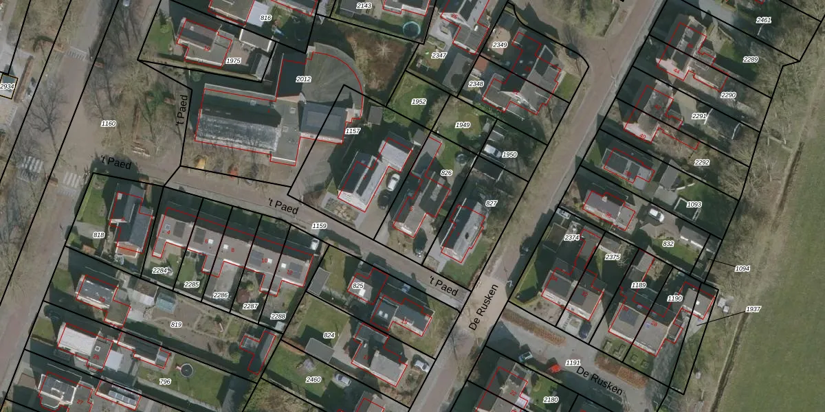 Het perceel waarop 't Paed 5 staat heeft een oppervlakte van 388 m². Dit is een groot perceel. De perceeloppervlakte wordt geregistreerd door het Kadaster. Gedetailleerde informatie over de maten van dit perceel kunt u vinden in het rapport Kadastrale kaart met maatvoering van 't Paed 5.