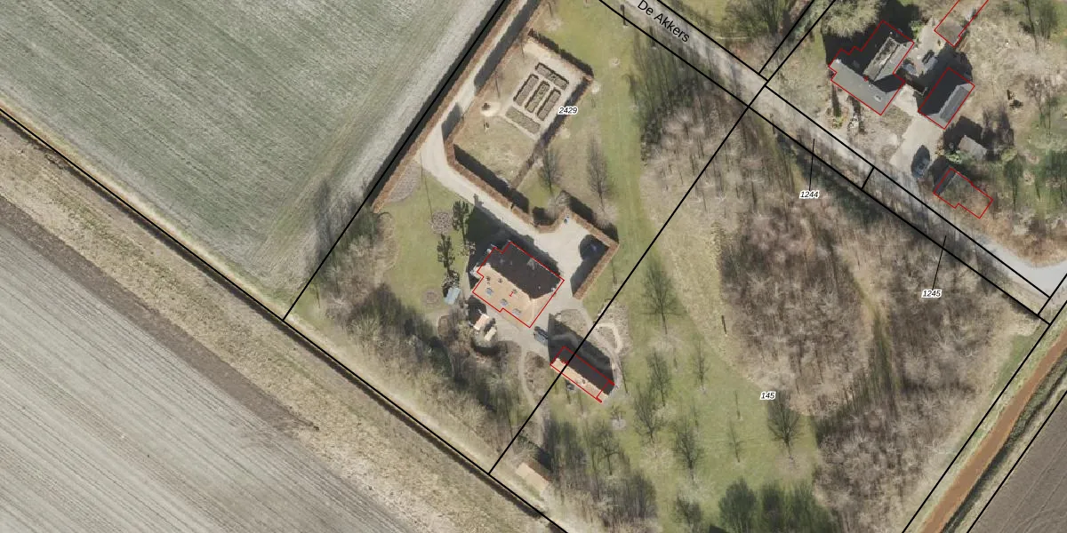 De Akkers 1 is gelegen op kadastraal perceel STR02P2429. Deze kadastrale aanduiding is uniek en wordt gebruikt door het Kadaster om eigendomsrechten en andere zakelijke rechten vast te leggen. Het perceel maakt onderdeel uit van de kadastrale gemeente Slochteren.