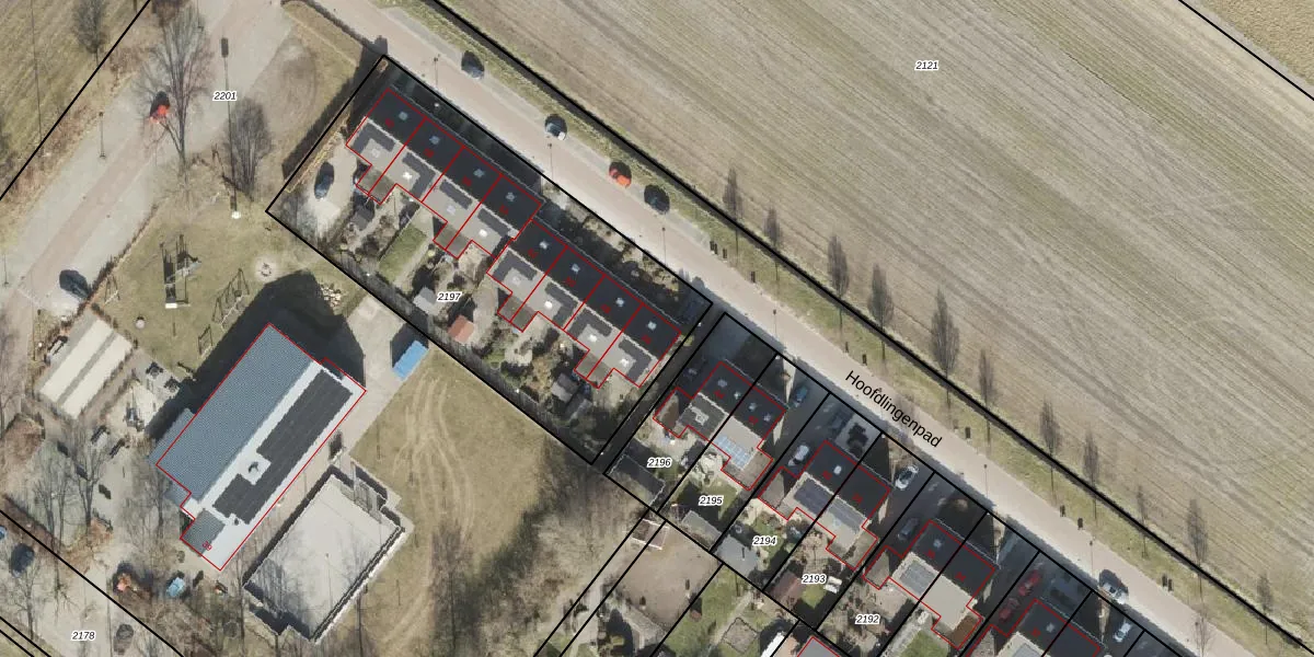 Het perceel waarop Hoofdlingenpad 46 staat heeft een oppervlakte van 1900 m². Dit is een zeer groot perceel. De perceeloppervlakte wordt geregistreerd door het Kadaster. Gedetailleerde informatie over de maten van dit perceel kunt u vinden in het rapport Kadastrale kaart met maatvoering van Hoofdlingenpad 46.