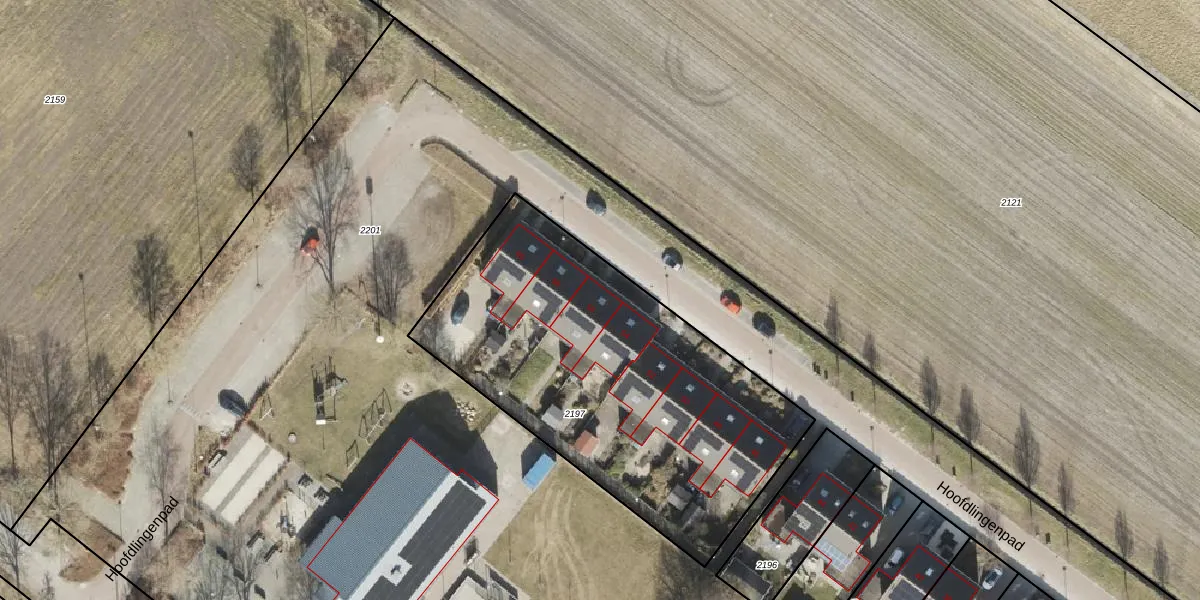 Hoofdlingenpad 56 is gelegen op kadastraal perceel STR02G2197. Deze kadastrale aanduiding is uniek en wordt gebruikt door het Kadaster om eigendomsrechten en andere zakelijke rechten vast te leggen. Het perceel maakt onderdeel uit van de kadastrale gemeente Slochteren.