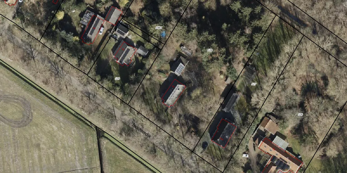 Het perceel waarop Slochterdijk 64 staat heeft een oppervlakte van 4265 m². Dit is een zeer groot perceel. De perceeloppervlakte wordt geregistreerd door het Kadaster. Gedetailleerde informatie over de maten van dit perceel kunt u vinden in het rapport Kadastrale kaart met maatvoering van Slochterdijk 64.