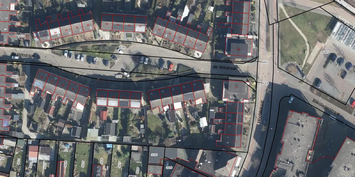 Het perceel waarop de Witstraat 13 staat heeft een oppervlakte van 6052 m². Dit is een zeer groot perceel. De perceeloppervlakte wordt geregistreerd door het Kadaster. Gedetailleerde informatie over de maten van dit perceel kunt u vinden in het rapport Kadastrale kaart met maatvoering van de Witstraat 13.