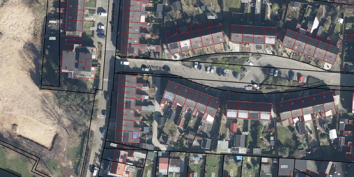 Het perceel waarop de Witstraat 35 staat heeft een oppervlakte van 6052 m². Dit is een zeer groot perceel. De perceeloppervlakte wordt geregistreerd door het Kadaster. Gedetailleerde informatie over de maten van dit perceel kunt u vinden in het rapport Kadastrale kaart met maatvoering van de Witstraat 35.