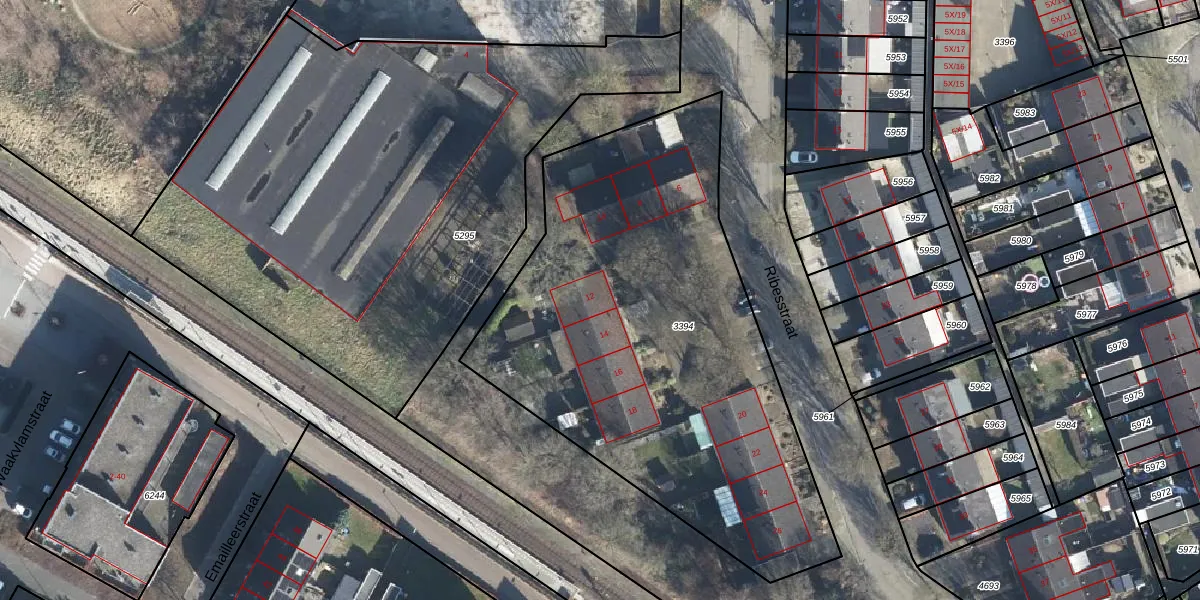 Het perceel waarop Ribesstraat 12 staat heeft een oppervlakte van 2560 m². Dit is een zeer groot perceel. De perceeloppervlakte wordt geregistreerd door het Kadaster. Gedetailleerde informatie over de maten van dit perceel kunt u vinden in het rapport Kadastrale kaart met maatvoering van Ribesstraat 12.