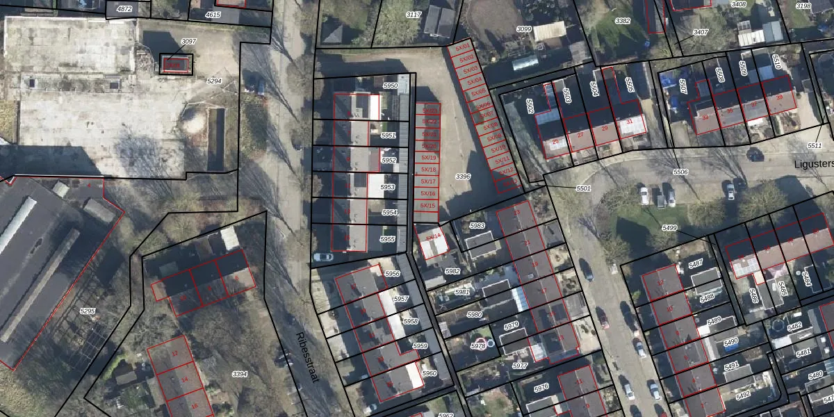 Het perceel waarop Ribesstraat 5-X-15 staat heeft een oppervlakte van 1010 m². Dit is een zeer groot perceel. De perceeloppervlakte wordt geregistreerd door het Kadaster. Gedetailleerde informatie over de maten van dit perceel kunt u vinden in het rapport Kadastrale kaart met maatvoering van Ribesstraat 5-X-15.