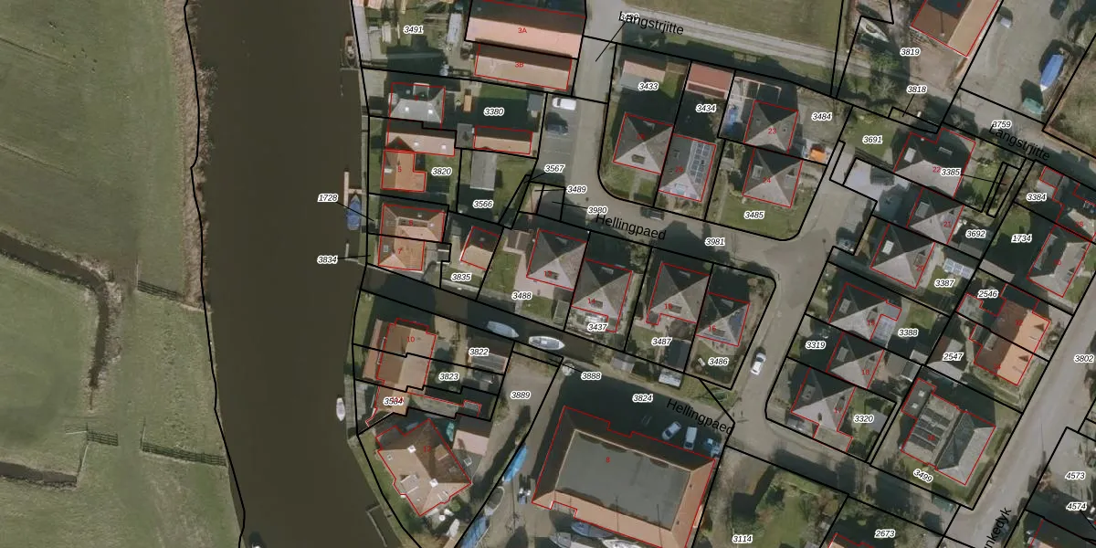 Hellingpaed 13 is gelegen op kadastraal perceel HEE04A3488. Deze kadastrale aanduiding is uniek en wordt gebruikt door het Kadaster om eigendomsrechten en andere zakelijke rechten vast te leggen. Het perceel maakt onderdeel uit van de kadastrale gemeente Heeg.