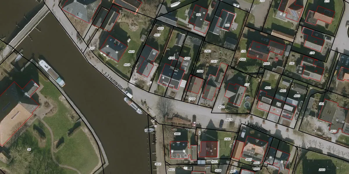 J.J.Hofstrjitte 9 is gelegen op kadastraal perceel HEE04A4703. Deze kadastrale aanduiding is uniek en wordt gebruikt door het Kadaster om eigendomsrechten en andere zakelijke rechten vast te leggen. Het perceel maakt onderdeel uit van de kadastrale gemeente Heeg.