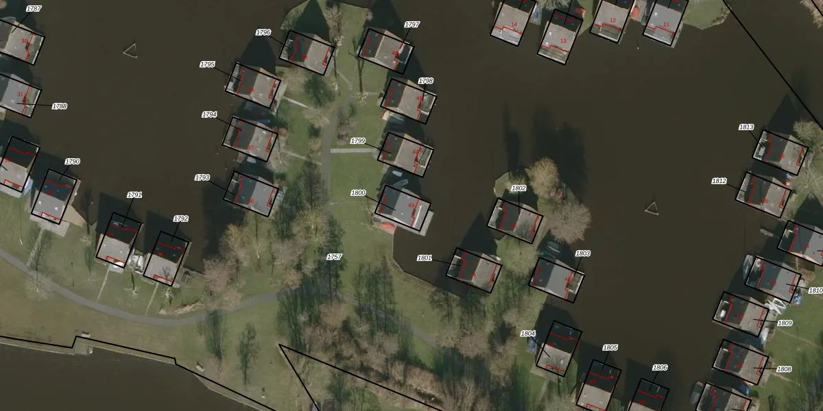 Het adres is gelegen op perceel 1800 in de sectie B en de kadastrale gemeente Heeg. De kadastrale aanduiding is aldus HEE04-B-1800. Het perceel is kleiner dan gemiddeld in Heeg. Het perceel is 85 m² groot, terwijl het gemiddelde ligt op 1,1 ha. De grootste perceeloppervlakte in de kadastrale gemeente is 3,52 km². De kleinste oppervlakte bedraagt 0 m². Dit is het enige adres dat aanwezig is op het perceel. In de Basisregistratie Kadaster (BRK) werden de grenzen van het perceel geregistreerd op 05-03-1998.