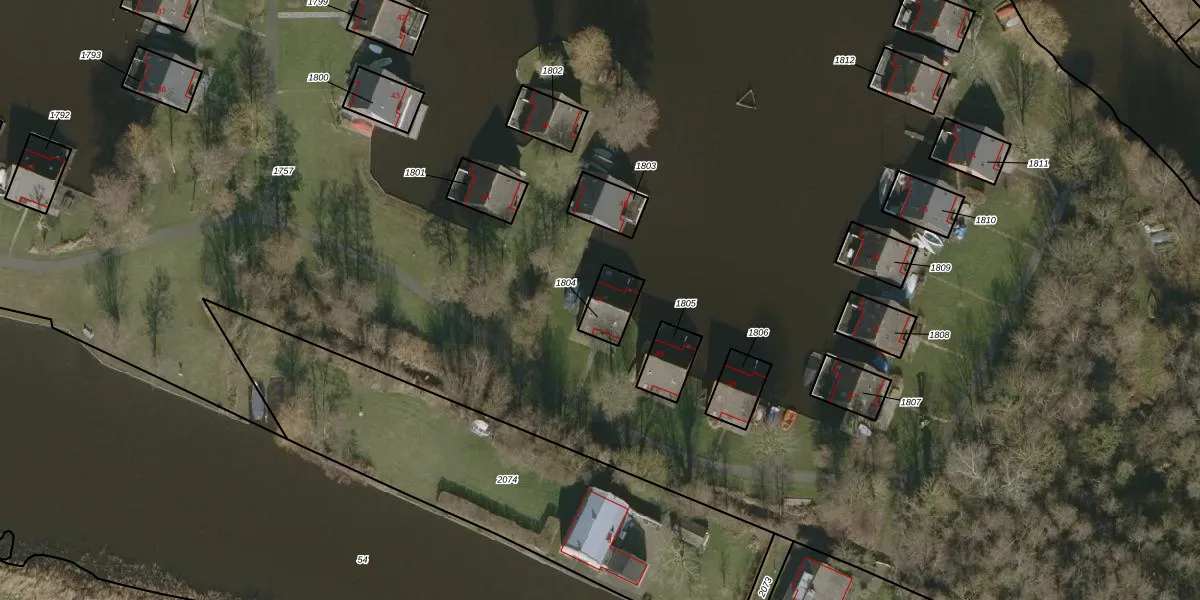 Het adres is gelegen op perceel 1804 in de sectie B en de kadastrale gemeente Heeg. De kadastrale aanduiding is aldus HEE04-B-1804. Het perceel is kleiner dan gemiddeld in Heeg. Het perceel is 85 m² groot, terwijl het gemiddelde ligt op 1,1 ha. De grootste perceeloppervlakte in de kadastrale gemeente is 3,52 km². De kleinste oppervlakte bedraagt 0 m². Dit is het enige adres dat aanwezig is op het perceel. De laatste wijziging in het de Basisregistratie Kadaster (BRK) was op 05-03-1998.