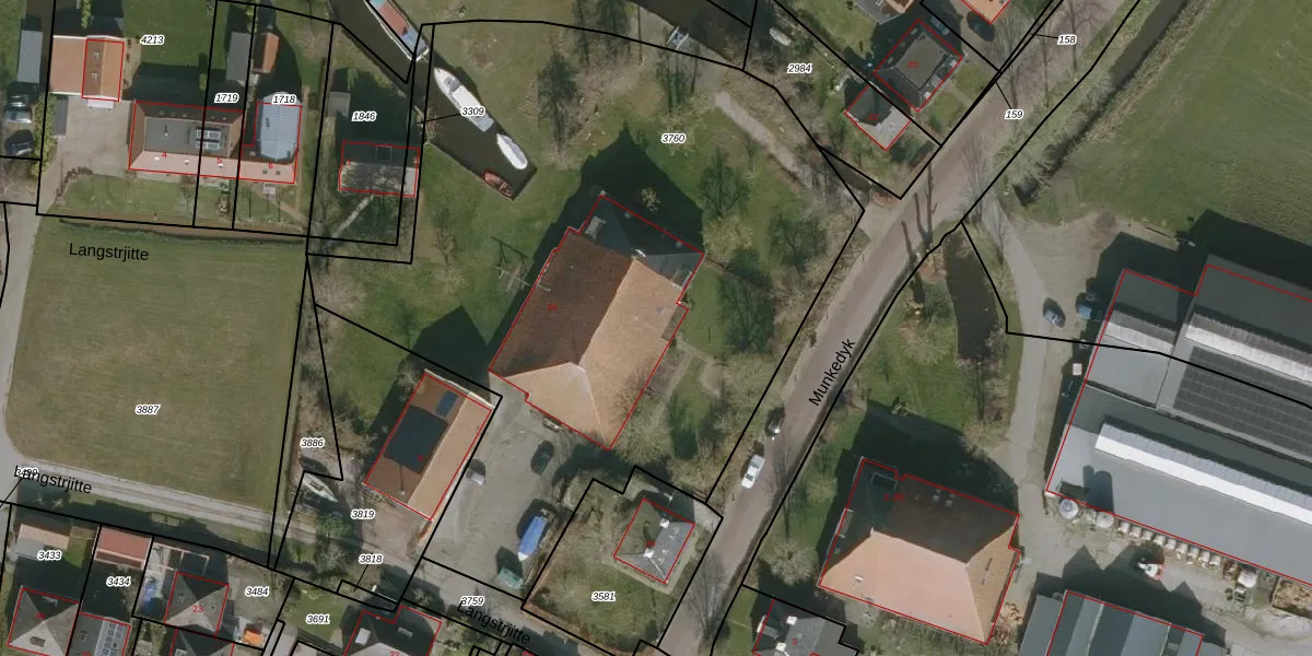 Het perceel waarop Munkedyk 24 staat heeft een oppervlakte van 4185 m². Dit is een zeer groot perceel. De perceeloppervlakte wordt geregistreerd door het Kadaster. Gedetailleerde informatie over de maten van dit perceel kunt u vinden in het rapport Kadastrale kaart met maatvoering van Munkedyk 24.