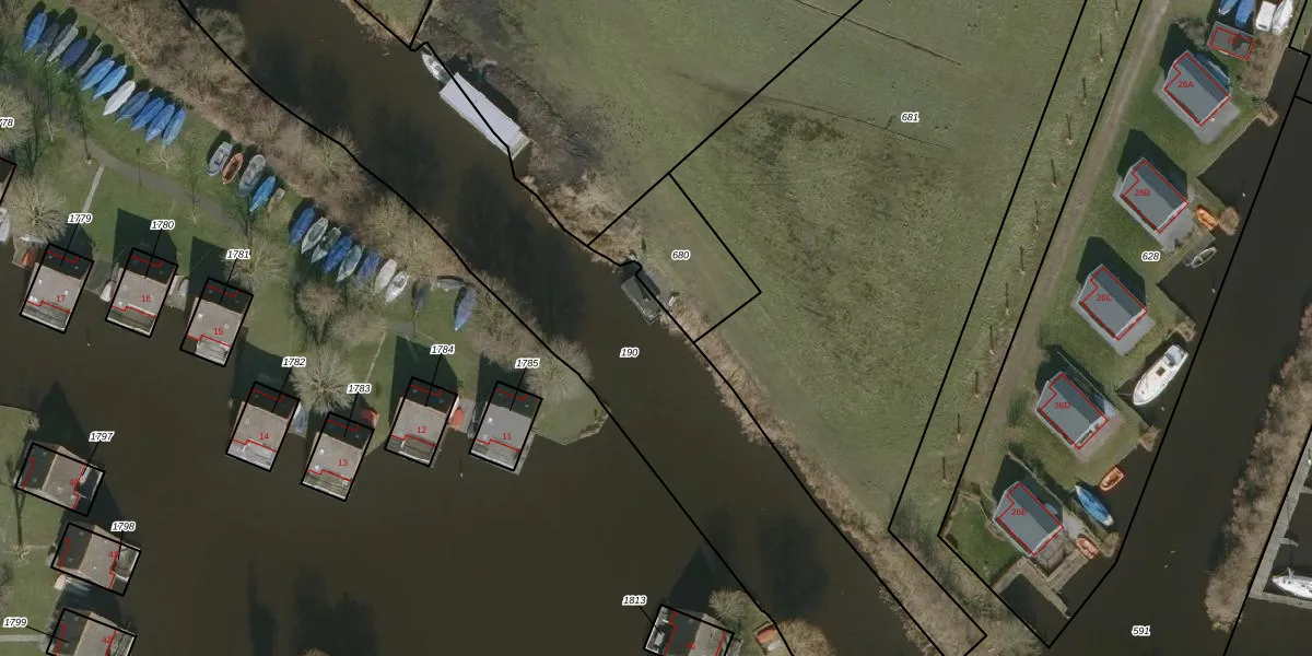 Het perceel waarop Wieldyk 26-K staat heeft een oppervlakte van 7755 m². Dit is een zeer groot perceel. De perceeloppervlakte wordt geregistreerd door het Kadaster. Gedetailleerde informatie over de maten van dit perceel kunt u vinden in het rapport Kadastrale kaart met maatvoering van Wieldyk 26-K.