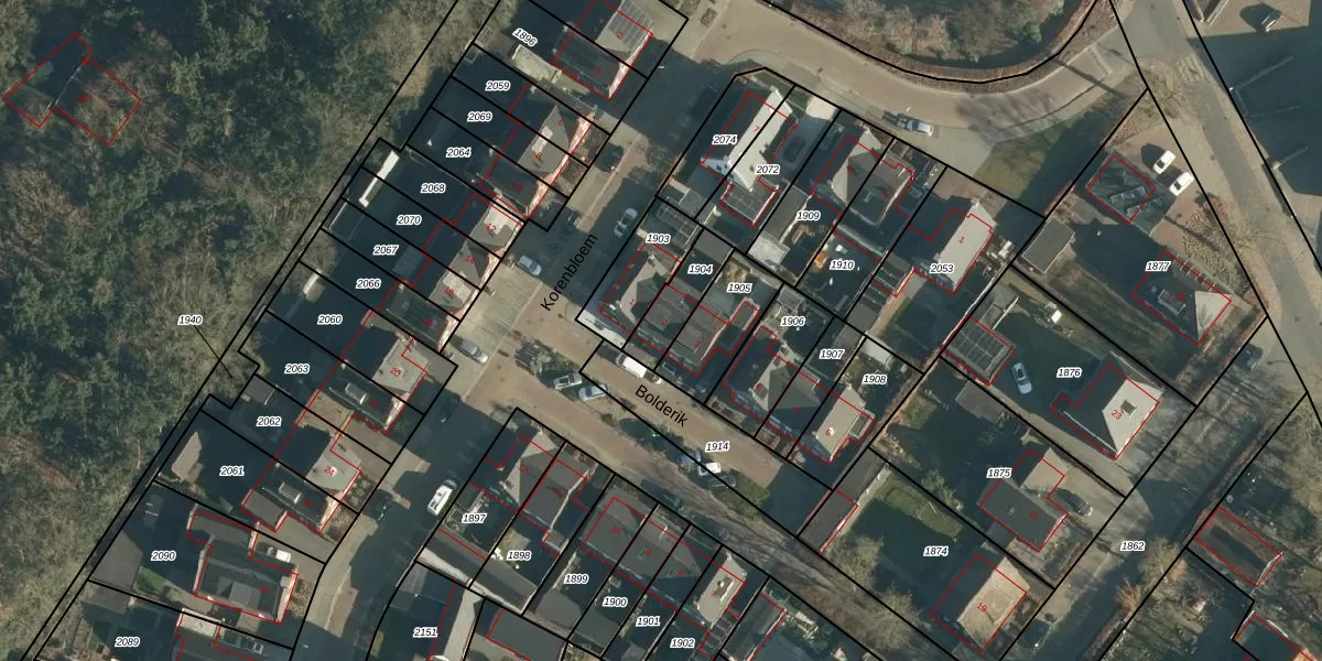 Gebruik de zoekbalk of klik op een perceel voor informatie over de adressen binnen dit perceel.