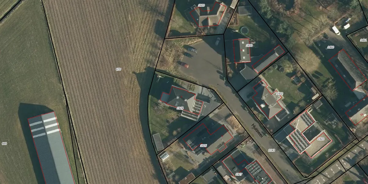 Het perceel waarop Huiswei 3 staat heeft een oppervlakte van 1070 m². Dit is een zeer groot perceel. De perceeloppervlakte wordt geregistreerd door het Kadaster. Gedetailleerde informatie over de maten van dit perceel kunt u vinden in het rapport Kadastrale kaart met maatvoering van Huiswei 3.