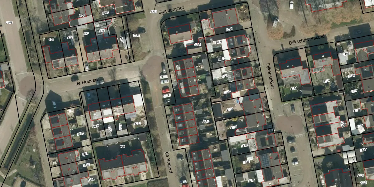 Het perceel waarop de Bogerd 23 staat heeft een oppervlakte van 1725 m². Dit is een zeer groot perceel. De perceeloppervlakte wordt geregistreerd door het Kadaster. Gedetailleerde informatie over de maten van dit perceel kunt u vinden in het rapport Kadastrale kaart met maatvoering van de Bogerd 23.