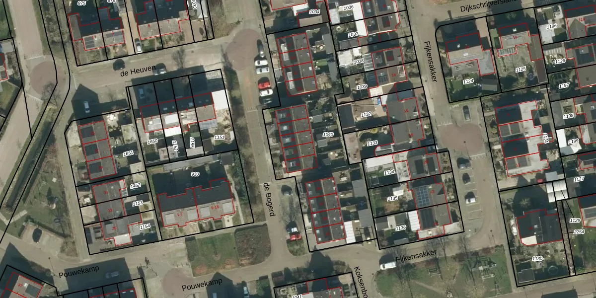 Het perceel waarop de Bogerd 31 staat heeft een oppervlakte van 1725 m². Dit is een zeer groot perceel. De perceeloppervlakte wordt geregistreerd door het Kadaster. Gedetailleerde informatie over de maten van dit perceel kunt u vinden in het rapport Kadastrale kaart met maatvoering van de Bogerd 31.
