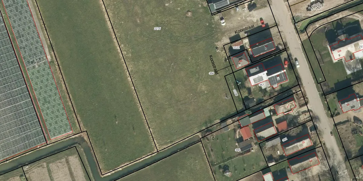 Het perceel waarop Kooistraat 22 staat heeft een oppervlakte van 7150 m². Dit is een zeer groot perceel. De perceeloppervlakte wordt geregistreerd door het Kadaster. Gedetailleerde informatie over de maten van dit perceel kunt u vinden in het rapport Kadastrale kaart met maatvoering van Kooistraat 22.