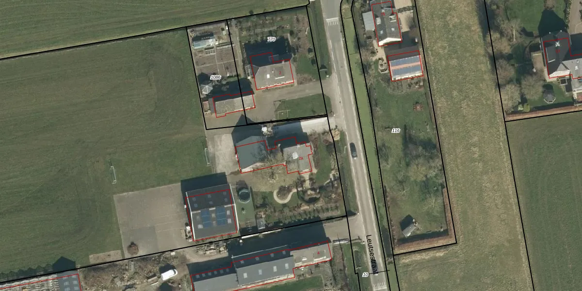 Het perceel waarop Leutsestraat 2-a staat heeft een oppervlakte van 2,2 ha. Dit is een zeer groot perceel. De perceeloppervlakte wordt geregistreerd door het Kadaster. Gedetailleerde informatie over de maten van dit perceel kunt u vinden in het rapport Kadastrale kaart met maatvoering van Leutsestraat 2-a.