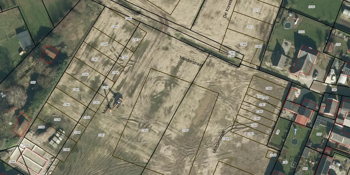 Mulderstraat 20 is gelegen op kadastraal perceel KWK02P2355. Deze kadastrale aanduiding is uniek en wordt gebruikt door het Kadaster om eigendomsrechten en andere zakelijke rechten vast te leggen. Het perceel maakt onderdeel uit van de kadastrale gemeente Kerkwijk.