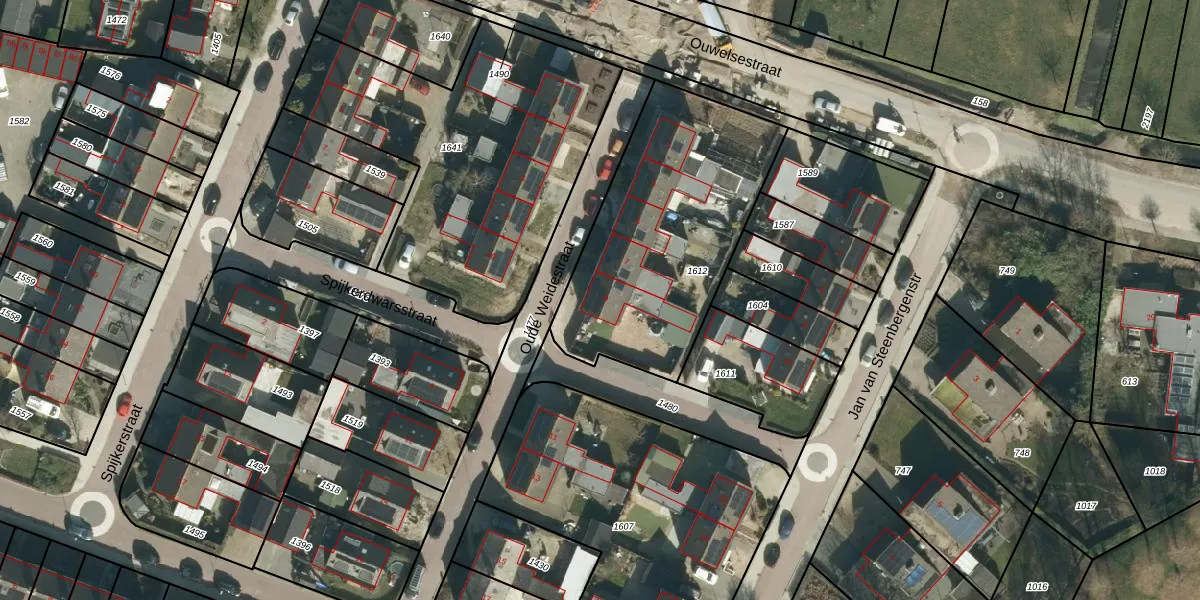 Het perceel waarop Oude Weidestraat 9 staat heeft een oppervlakte van 1097 m². Dit is een zeer groot perceel. De perceeloppervlakte wordt geregistreerd door het Kadaster. Gedetailleerde informatie over de maten van dit perceel kunt u vinden in het rapport Kadastrale kaart met maatvoering van Oude Weidestraat 9.
