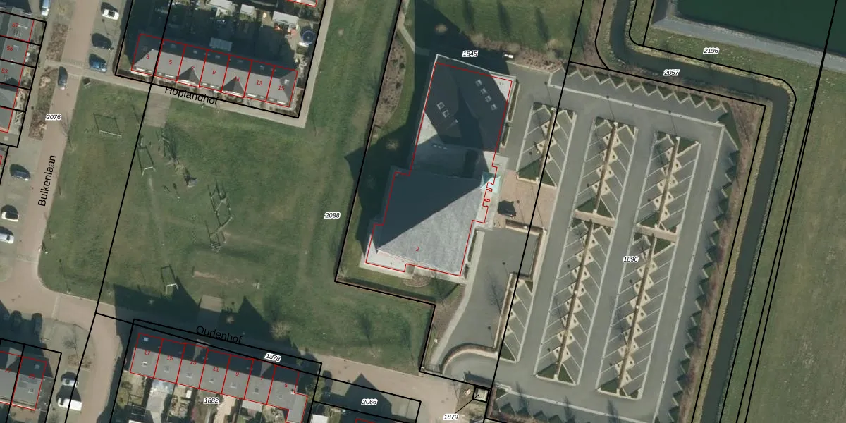 Oudenhof 2 is gelegen op kadastraal perceel KWK02P1845. Deze kadastrale aanduiding is uniek en wordt gebruikt door het Kadaster om eigendomsrechten en andere zakelijke rechten vast te leggen. Het perceel maakt onderdeel uit van de kadastrale gemeente Kerkwijk.