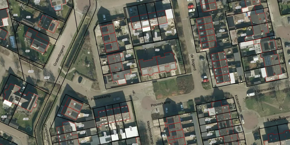 Pouwekamp 1 is gelegen op kadastraal perceel KWK02P930. Deze kadastrale aanduiding is uniek en wordt gebruikt door het Kadaster om eigendomsrechten en andere zakelijke rechten vast te leggen. Het perceel maakt onderdeel uit van de kadastrale gemeente Kerkwijk.