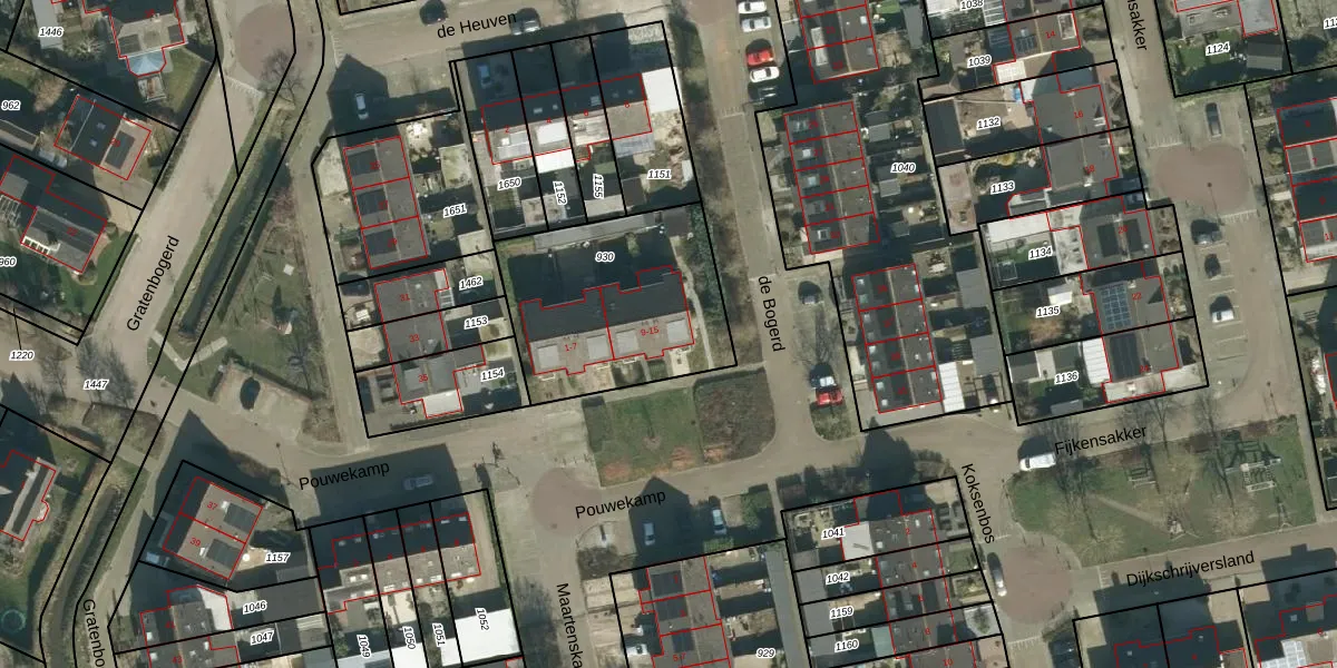 Het perceel waarop Pouwekamp 13 staat heeft een oppervlakte van 777 m². Dit is een groot perceel. De perceeloppervlakte wordt geregistreerd door het Kadaster. Gedetailleerde informatie over de maten van dit perceel kunt u vinden in het rapport Kadastrale kaart met maatvoering van Pouwekamp 13.