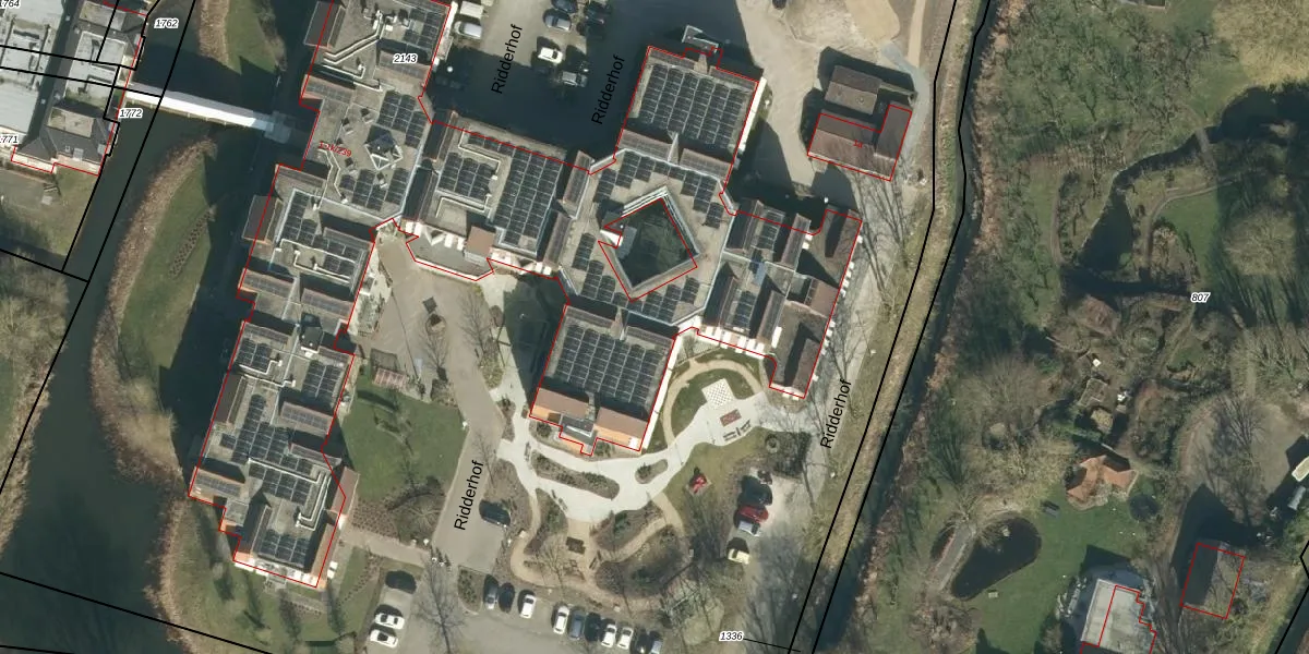 Het perceel waarop Ridderhof 1-k-130 staat heeft een oppervlakte van 1,5 ha. Dit is een zeer groot perceel. De perceeloppervlakte wordt geregistreerd door het Kadaster. Gedetailleerde informatie over de maten van dit perceel kunt u vinden in het rapport Kadastrale kaart met maatvoering van Ridderhof 1-k-130.