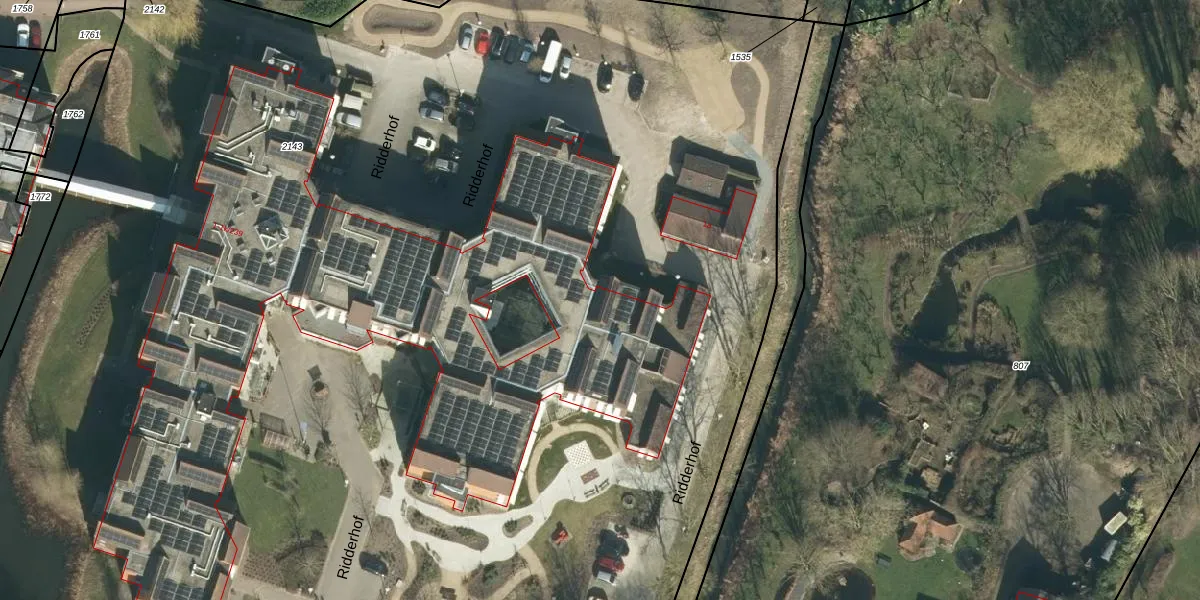 Het perceel waarop Ridderhof 1-k-219 staat heeft een oppervlakte van 1,5 ha. Dit is een zeer groot perceel. De perceeloppervlakte wordt geregistreerd door het Kadaster. Gedetailleerde informatie over de maten van dit perceel kunt u vinden in het rapport Kadastrale kaart met maatvoering van Ridderhof 1-k-219.