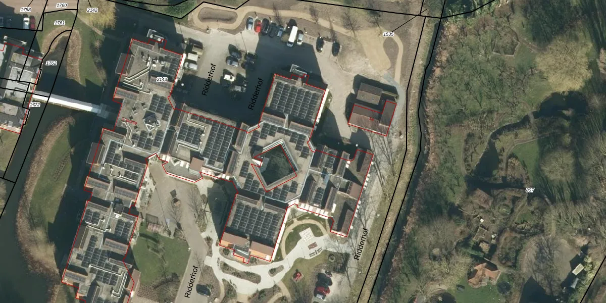 Het perceel waarop Ridderhof 1-k-220 staat heeft een oppervlakte van 1,5 ha. Dit is een zeer groot perceel. De perceeloppervlakte wordt geregistreerd door het Kadaster. Gedetailleerde informatie over de maten van dit perceel kunt u vinden in het rapport Kadastrale kaart met maatvoering van Ridderhof 1-k-220.