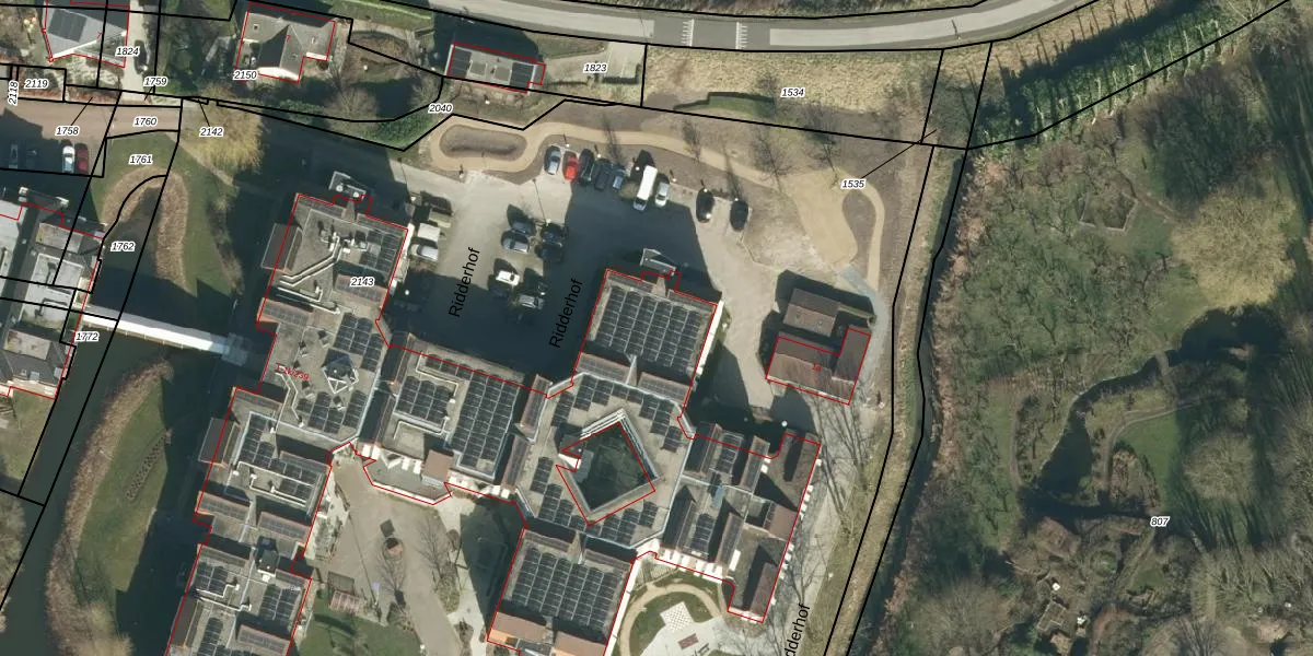Het perceel waarop Ridderhof 1-k-235 staat heeft een oppervlakte van 1,5 ha. Dit is een zeer groot perceel. De perceeloppervlakte wordt geregistreerd door het Kadaster. Gedetailleerde informatie over de maten van dit perceel kunt u vinden in het rapport Kadastrale kaart met maatvoering van Ridderhof 1-k-235.