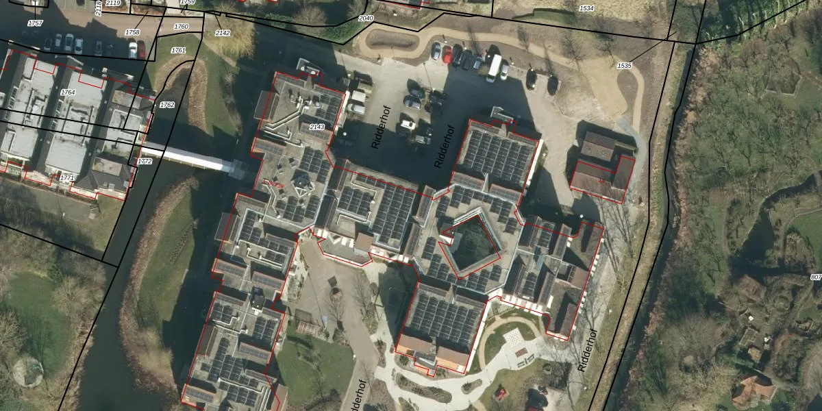 Het perceel waarop Ridderhof 17 staat heeft een oppervlakte van 1,5 ha. Dit is een zeer groot perceel. De perceeloppervlakte wordt geregistreerd door het Kadaster. Gedetailleerde informatie over de maten van dit perceel kunt u vinden in het rapport Kadastrale kaart met maatvoering van Ridderhof 17.