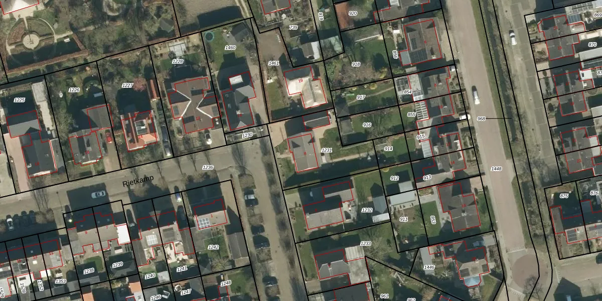 Het perceel waarop Rietkamp 8 staat heeft een oppervlakte van 580 m². Dit is een groot perceel. De perceeloppervlakte wordt geregistreerd door het Kadaster. Gedetailleerde informatie over de maten van dit perceel kunt u vinden in het rapport Kadastrale kaart met maatvoering van Rietkamp 8.