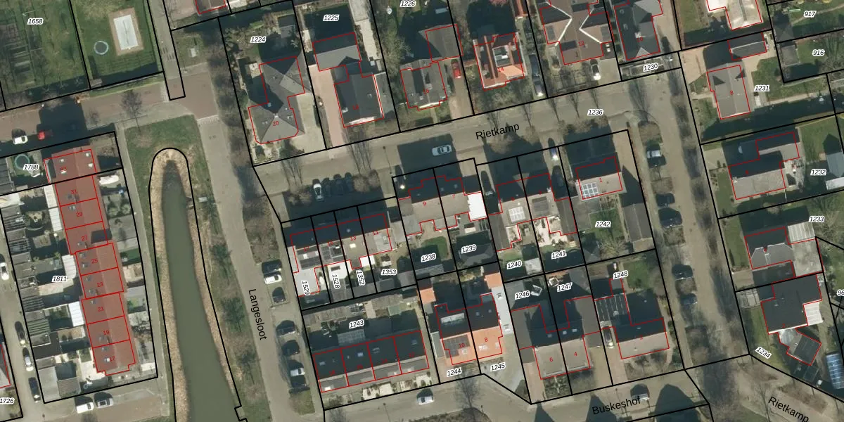 Het perceel waarop Rietkamp 9 staat heeft een oppervlakte van 253 m². Dit is een middelgroot perceel. De perceeloppervlakte wordt geregistreerd door het Kadaster. Gedetailleerde informatie over de maten van dit perceel kunt u vinden in het rapport Kadastrale kaart met maatvoering van Rietkamp 9.