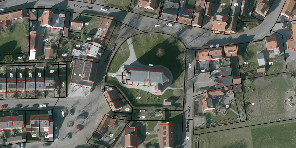Het perceel waarop Dorpsstraat 25 staat heeft een oppervlakte van 2323 m². Dit is een zeer groot perceel. De perceeloppervlakte wordt geregistreerd door het Kadaster. Gedetailleerde informatie over de maten van dit perceel kunt u vinden in het rapport Kadastrale kaart met maatvoering van Dorpsstraat 25.