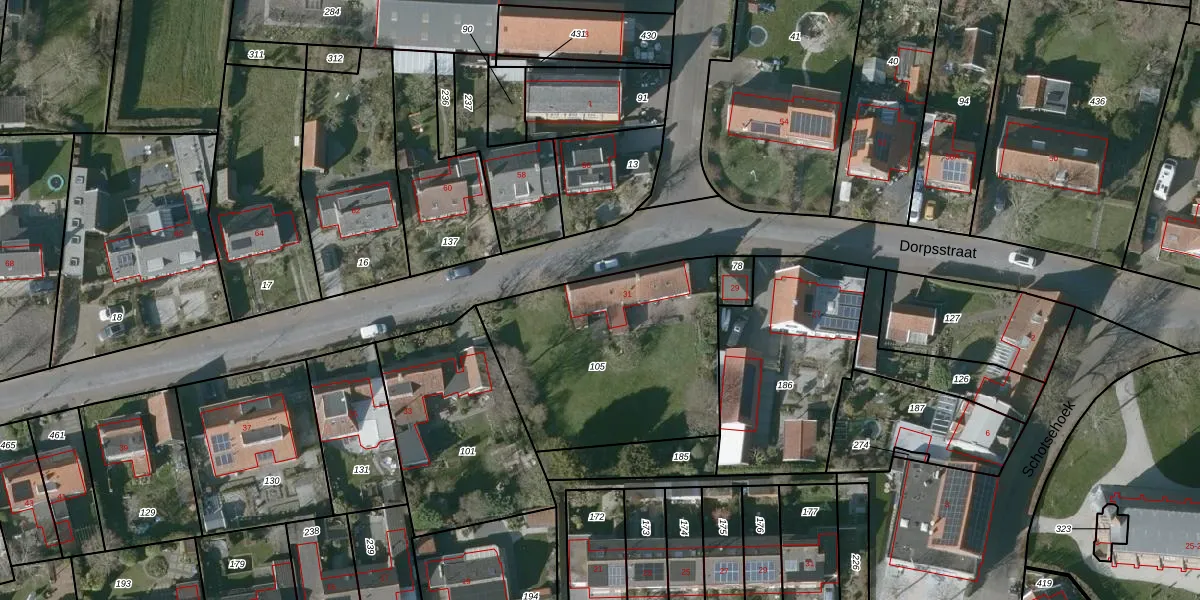 Het perceel waarop Dorpsstraat 31 staat heeft een oppervlakte van 987 m². Dit is een groot perceel. De perceeloppervlakte wordt geregistreerd door het Kadaster. Gedetailleerde informatie over de maten van dit perceel kunt u vinden in het rapport Kadastrale kaart met maatvoering van Dorpsstraat 31.