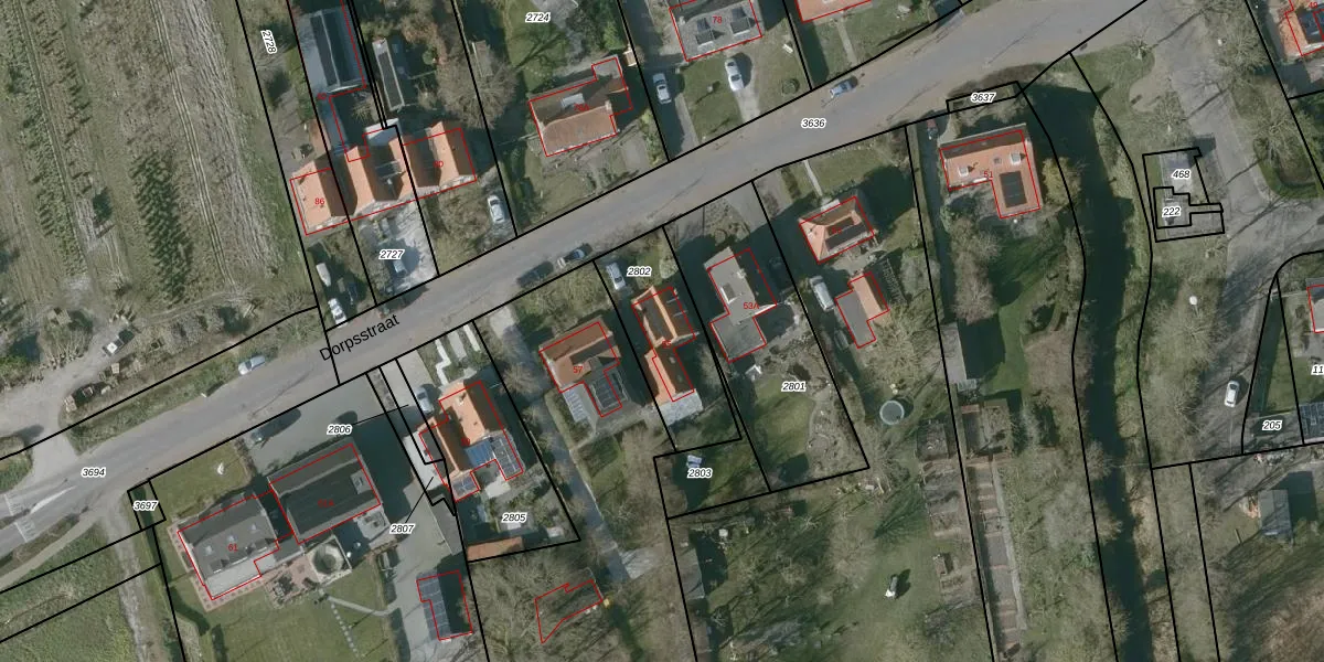 Het perceel waarop Dorpsstraat 55 staat heeft een oppervlakte van 352 m². Dit is een groot perceel. De perceeloppervlakte wordt geregistreerd door het Kadaster. Gedetailleerde informatie over de maten van dit perceel kunt u vinden in het rapport Kadastrale kaart met maatvoering van Dorpsstraat 55.