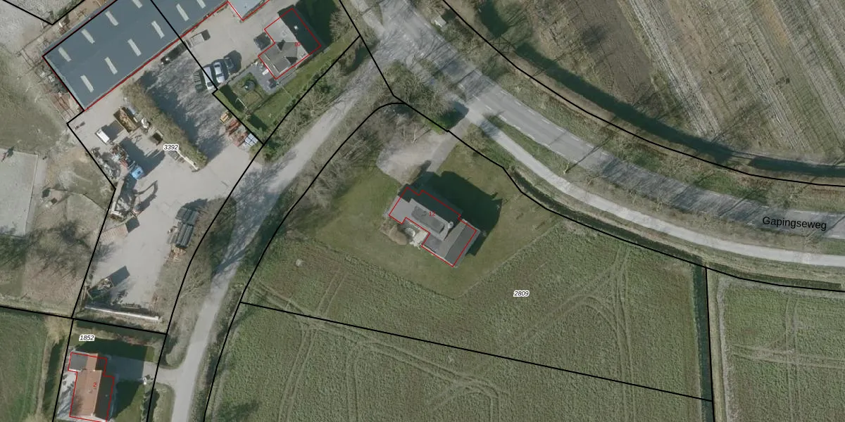 Het perceel waarop Gapingseweg 12 staat heeft een oppervlakte van 4135 m². Dit is een zeer groot perceel. De perceeloppervlakte wordt geregistreerd door het Kadaster. Gedetailleerde informatie over de maten van dit perceel kunt u vinden in het rapport Kadastrale kaart met maatvoering van Gapingseweg 12.