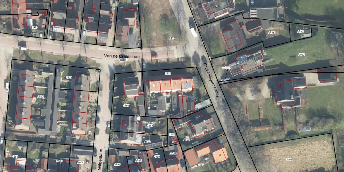 Het perceel waarop Van de Craatslaan 3 staat heeft een oppervlakte van 970 m². Dit is een groot perceel. De perceeloppervlakte wordt geregistreerd door het Kadaster. Gedetailleerde informatie over de maten van dit perceel kunt u vinden in het rapport Kadastrale kaart met maatvoering van Van de Craatslaan 3.