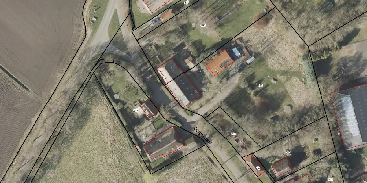 Het perceel waarop Dorpsstraat 2-A staat heeft een oppervlakte van 3655 m². Dit is een zeer groot perceel. De perceeloppervlakte wordt geregistreerd door het Kadaster. Gedetailleerde informatie over de maten van dit perceel kunt u vinden in het rapport Kadastrale kaart met maatvoering van Dorpsstraat 2-A.