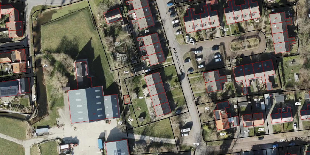 Het perceel waarop Krassumerstraat 15 staat heeft een oppervlakte van 1080 m². Dit is een zeer groot perceel. De perceeloppervlakte wordt geregistreerd door het Kadaster. Gedetailleerde informatie over de maten van dit perceel kunt u vinden in het rapport Kadastrale kaart met maatvoering van Krassumerstraat 15.