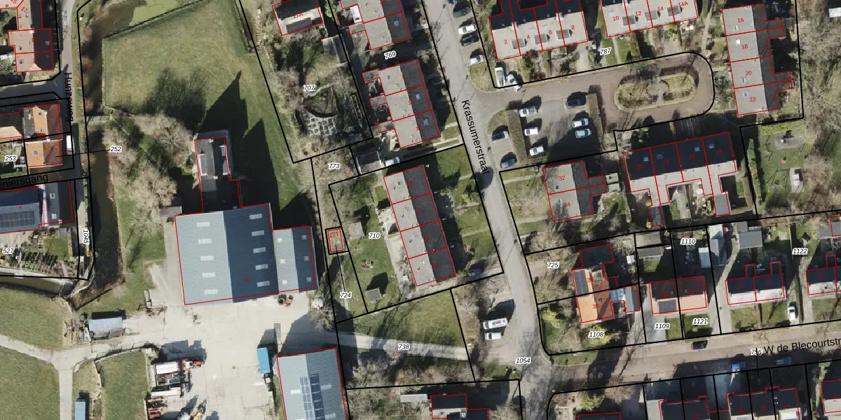 Het perceel waarop Krassumerstraat 17 staat heeft een oppervlakte van 1080 m². Dit is een zeer groot perceel. De perceeloppervlakte wordt geregistreerd door het Kadaster. Gedetailleerde informatie over de maten van dit perceel kunt u vinden in het rapport Kadastrale kaart met maatvoering van Krassumerstraat 17.