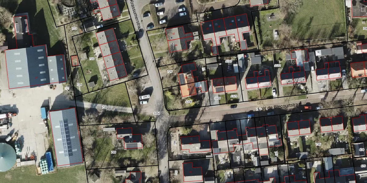 Het perceel waarop Krassumerstraat 38 staat heeft een oppervlakte van 327 m². Dit is een groot perceel. De perceeloppervlakte wordt geregistreerd door het Kadaster. Gedetailleerde informatie over de maten van dit perceel kunt u vinden in het rapport Kadastrale kaart met maatvoering van Krassumerstraat 38.