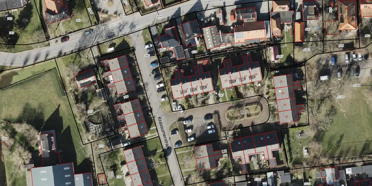 Het perceel waarop Krassumerstraat 4 staat heeft een oppervlakte van 3310 m². Dit is een zeer groot perceel. De perceeloppervlakte wordt geregistreerd door het Kadaster. Gedetailleerde informatie over de maten van dit perceel kunt u vinden in het rapport Kadastrale kaart met maatvoering van Krassumerstraat 4.