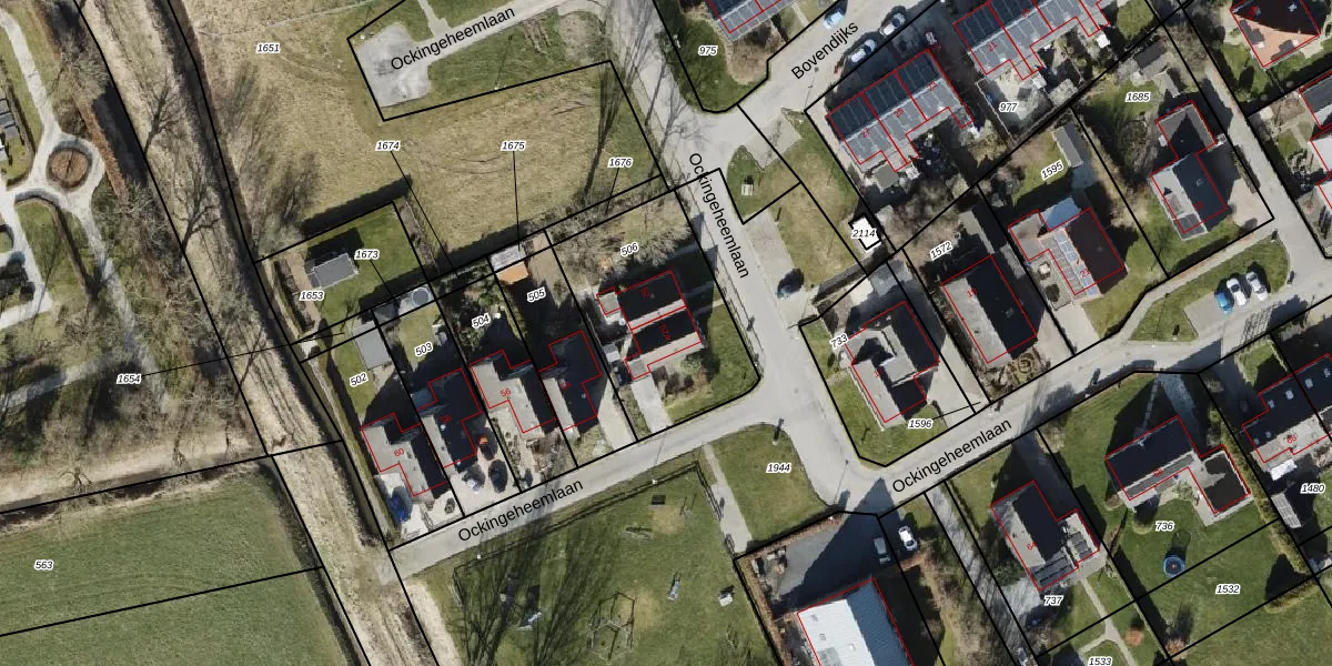 Het perceel waarop Ockingeheemlaan 52-A staat heeft een oppervlakte van 659 m². Dit is een groot perceel. De perceeloppervlakte wordt geregistreerd door het Kadaster. Gedetailleerde informatie over de maten van dit perceel kunt u vinden in het rapport Kadastrale kaart met maatvoering van Ockingeheemlaan 52-A.