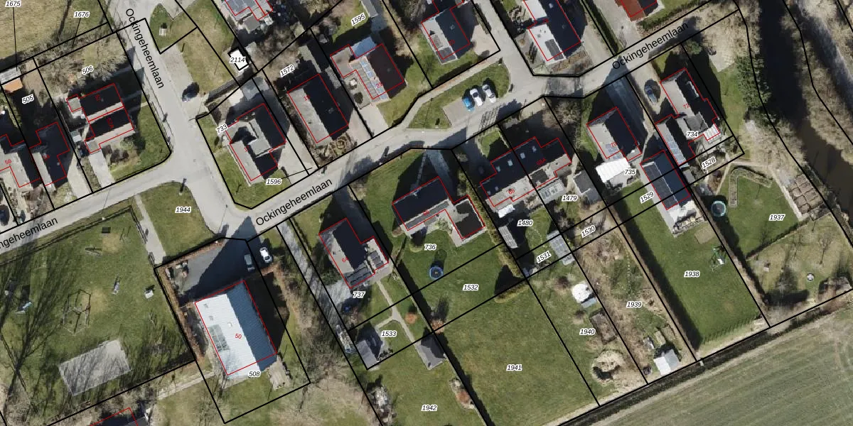 Het perceel waarop Ockingeheemlaan 66 staat heeft een oppervlakte van 727 m². Dit is een groot perceel. De perceeloppervlakte wordt geregistreerd door het Kadaster. Gedetailleerde informatie over de maten van dit perceel kunt u vinden in het rapport Kadastrale kaart met maatvoering van Ockingeheemlaan 66.