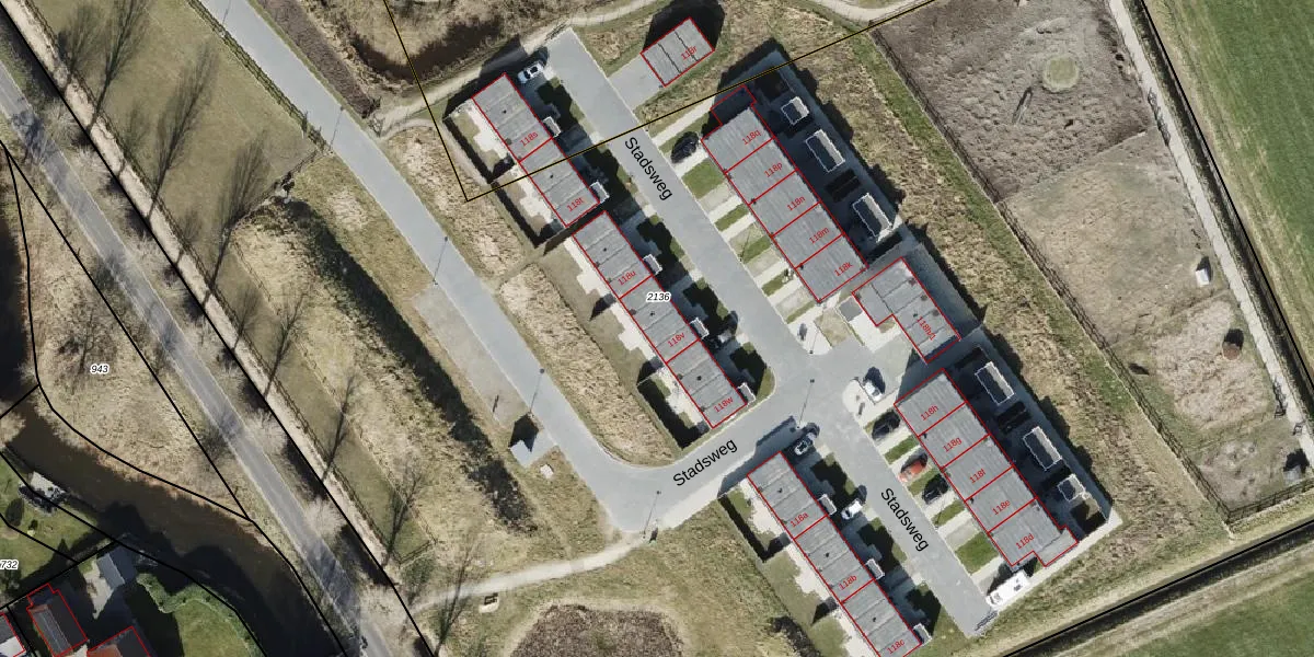 Het perceel waarop Stadsweg 118-v staat heeft een oppervlakte van 1,8 ha. Dit is een zeer groot perceel. De perceeloppervlakte wordt geregistreerd door het Kadaster. Gedetailleerde informatie over de maten van dit perceel kunt u vinden in het rapport Kadastrale kaart met maatvoering van Stadsweg 118-v.